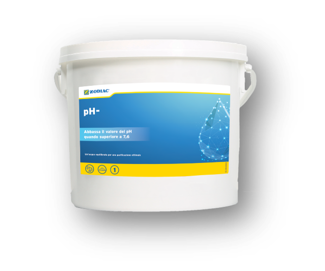 ZODIAC pH+ è un prodotto granulare per aumentare il pH che regola il valore del pH tra 7,2 e 7,6 quando è inferiore a 7,2.